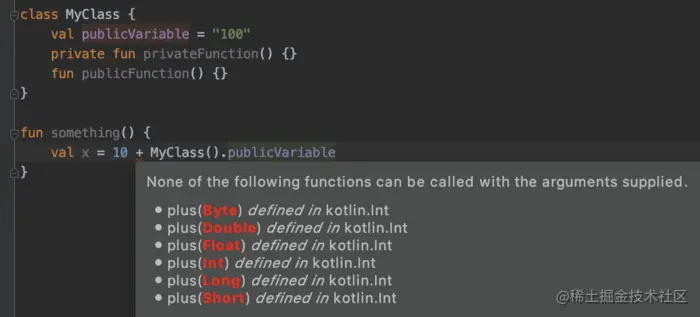 10 + MyClass().publicVairable会立即出错,因为Int和String不能加在一起。