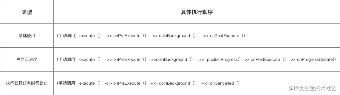 - onProgressUpdate:在主线程显示线程执行的进度。