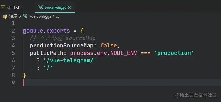 在vue.config.js文件中配置以下内容 module.exports = { // 生产环境 sourceMap productionSourceMap: false, publicPath: process.env.NODE_ENV === 'production' ? '/仓库名/' : '/' }