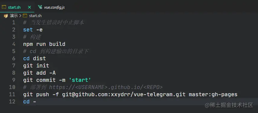 这vue项目的根路径创建start.sh