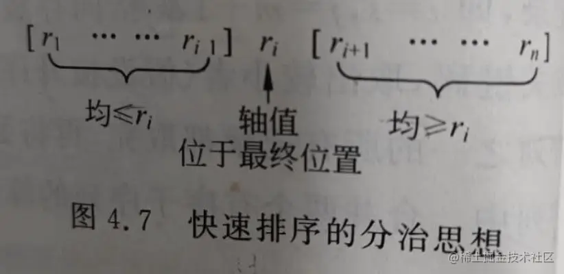 注意,轴值不需要选定,核心在于划分出两个子序列,前子序列都小于等于某个值,后子序列都大于等于某个值