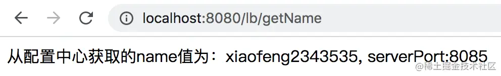 return "从配置中心获取的name值为:"+ name + ", serverPort:" + serverPort;