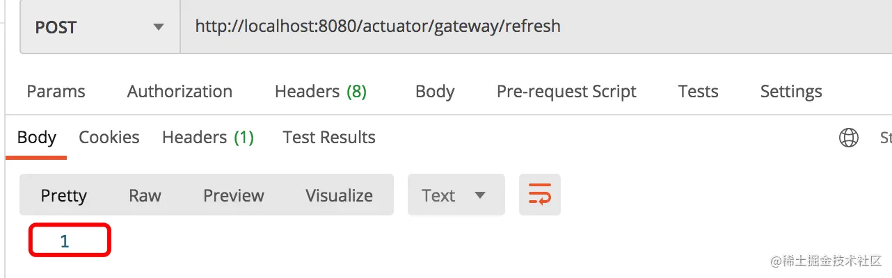 ---如果新增和删除没有更新缓存的话,那么需要调用/actuator/gateway/refresh进行刷新:
