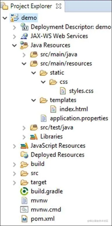 在上述例子中,请求 URI 为 /index,控制重定向到 index.html 文件。注意,index.html 文件应当放到 templates 目录下面,所有的 JS 和 CSS 文件应当放到 classpath 路径下的 static 目录。在示例中,我们使用 CSS 文件改变文本颜色。