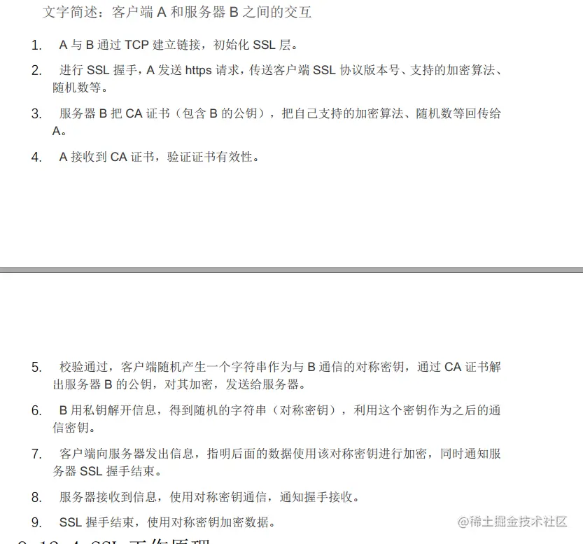 首先,这块要完全梳理,要花很多篇幅,从http为什么会有安全隐患说起,然后为什么对称加密不行,为什么必须要有CA机构等等等! 还有为什么不直接用非对称加密来通信? 为什么需要两者结合起来? 时间比较紧,就直接说核心吧~