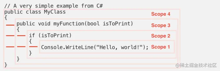 例如,通过查看下面的代码,我们可以清楚地看到独立的范围。