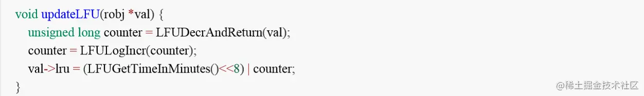 低8位用来记录访问频率,简称counter(logc,logistic counter)