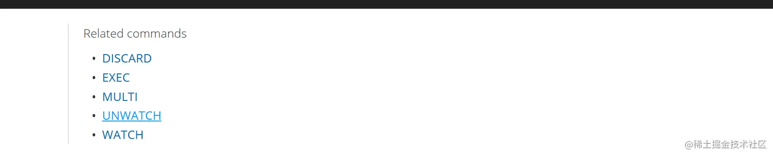 - Redis 的事务涉及到四个命令:multi(开启事务),exec(执行事务),discard(取消事务),watch(监视),unwatch(取消监视)