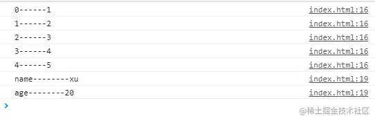 console.log(item + '------' + index)