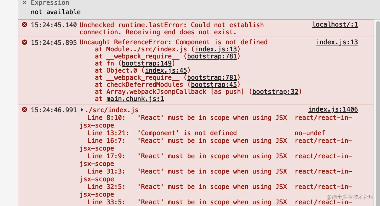 React本身非常健壮,接收参数的时候会进行检查,我们这里支持返回了{ type, props }两参数,React认为是不足的,比如之前我们看到ref、key 等;所有我们这里只能自己创建个react-dom.js,用自己创建的render方法来实现渲染。