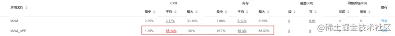 app集群CPU消耗65%,内存消耗50%