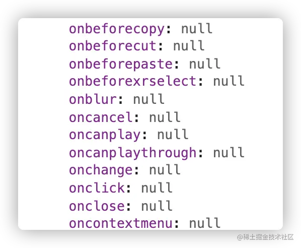 元素有很多执行方法,例如事件处理函数,如果不设置的话,它是这样的