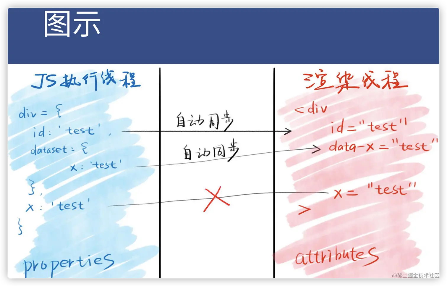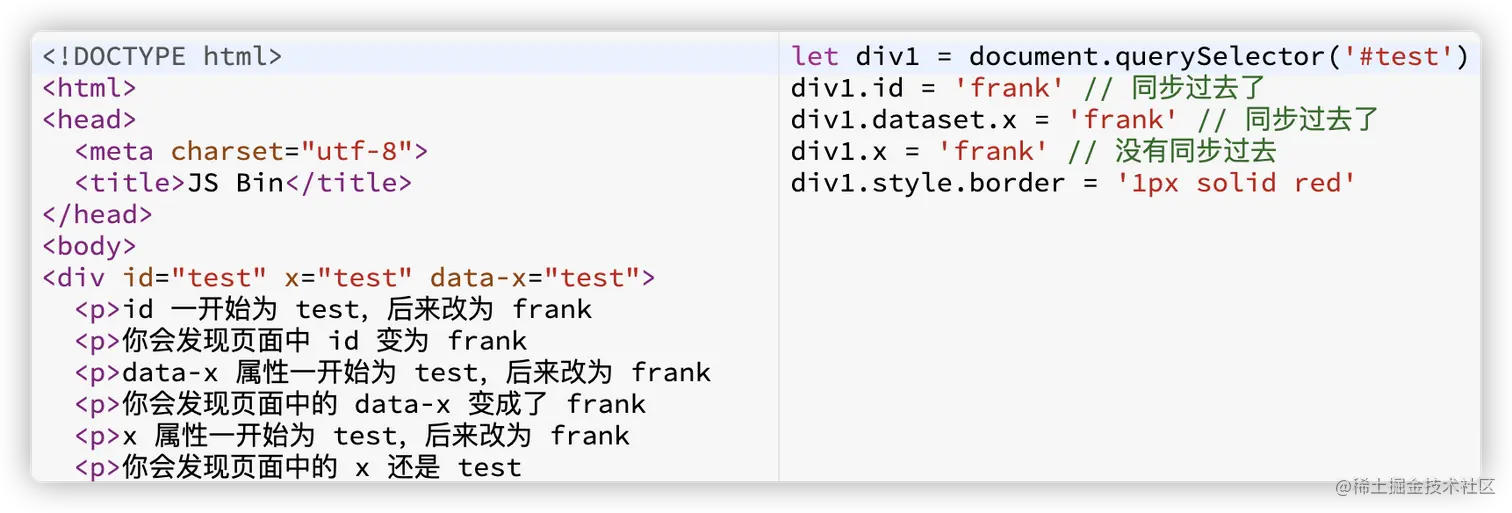 js中,只有修改标准属性会被浏览器同步到css渲染引擎中,例如:class、data-xxx就是标准属性