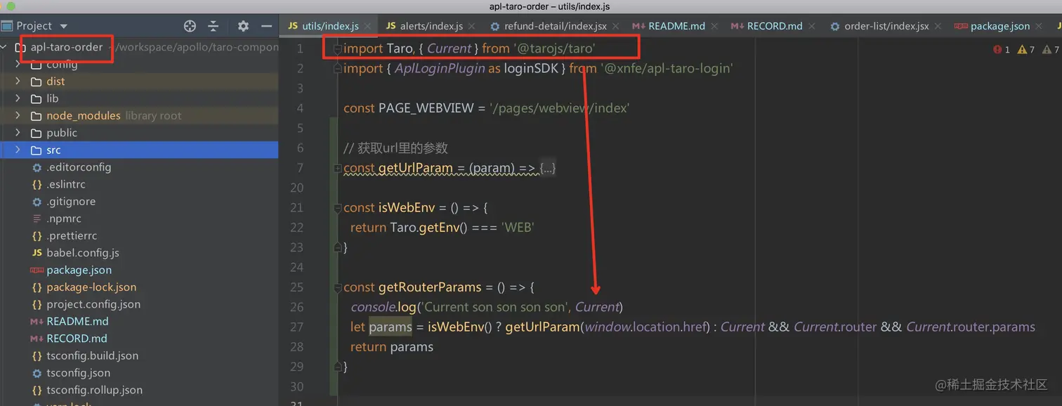 - 而项目使用的 @tarojs/runtime 是项目顶层 node_modules 的那份。两个包不一致导致 UI 库获取闭包的 Current 值错误。
