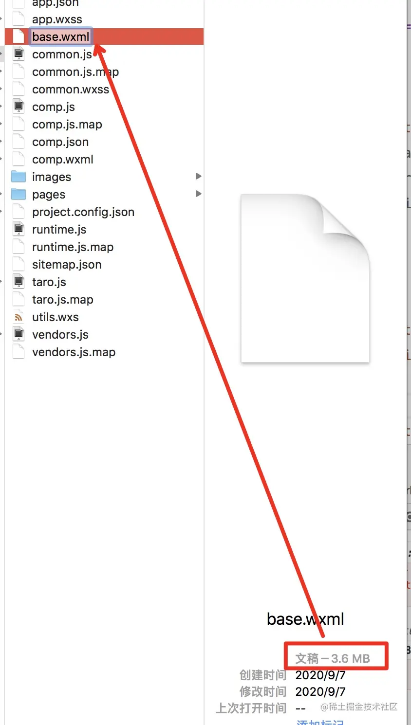 - 下边看我升级之前的base.wxml的体积,如