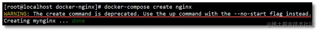 docker-compose create 为服务创建容器,已不推荐使用。推荐使用 docker-compose up 来实现该功能。