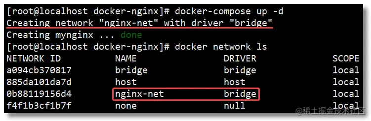 name: nginx-net # 网络名称,默认为"工程名称_网络条目名称"
