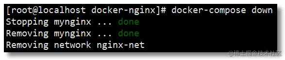 使用 docker-compose down 可以停止并删除容器、网络。