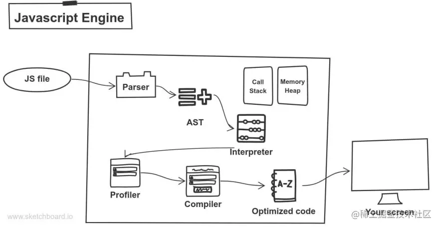 如果你好奇 JavaScript 是如何运作的,这里有一个简单的流程图。