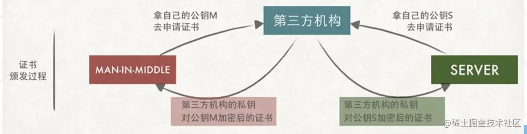 如果不法分子也申请了证书,那它可以对证书进行调包。客户端在这种情况下是无法分辨出收到的是你的证书,还是中间人的。因为不论是中间人的、还是你的证书都能使用第三方机构的公钥进行解密。