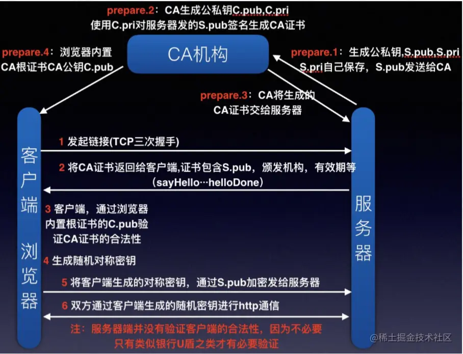 - 但是第一个问题又出来了,公钥怎么保证不被黑客拿到,如何黑客拿到公钥,拦截到服务端返回的信息又可以用公钥解密。