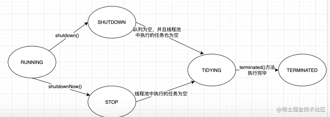- 线程池中执行的任务一旦变为空,进入TIDYING状态