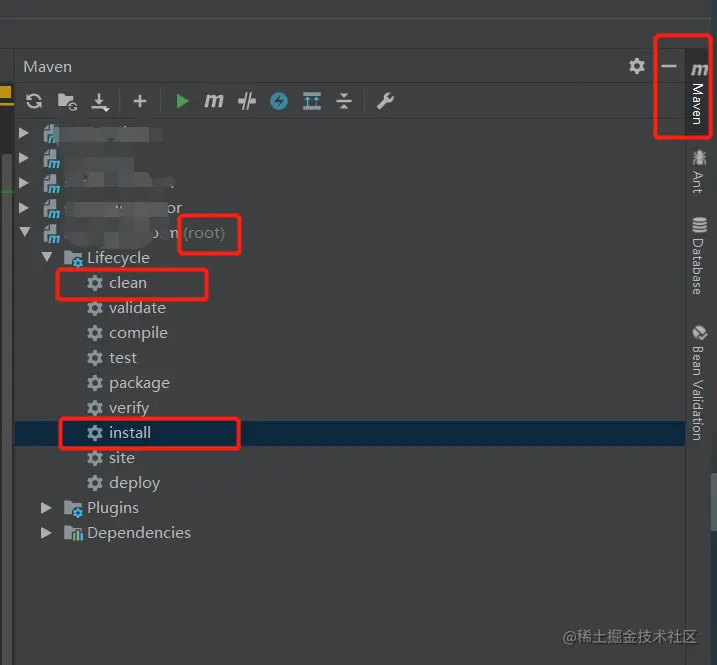 我们后端项目采用spring boot+maven开发,请注意要在父级项目(root)下依次执行clean->install就能成功打包