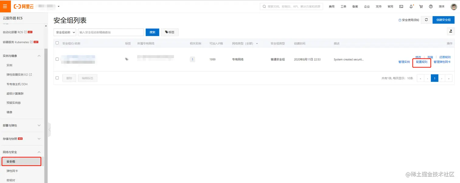 首先,登录阿里云进入云服务器ECS控制台,点击安全组---->配置规则