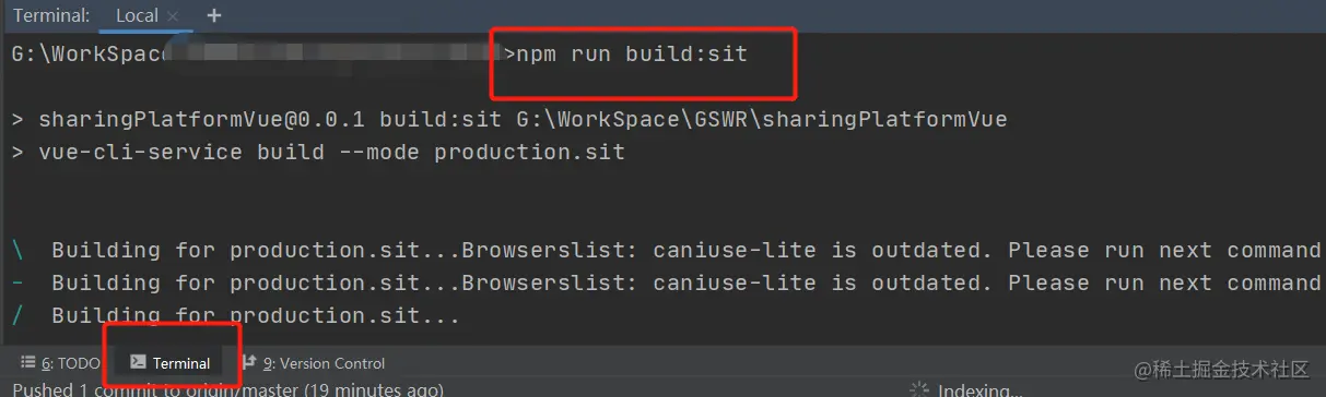 在我们开发工具的控制台输入命令npm run build:sit进行打包