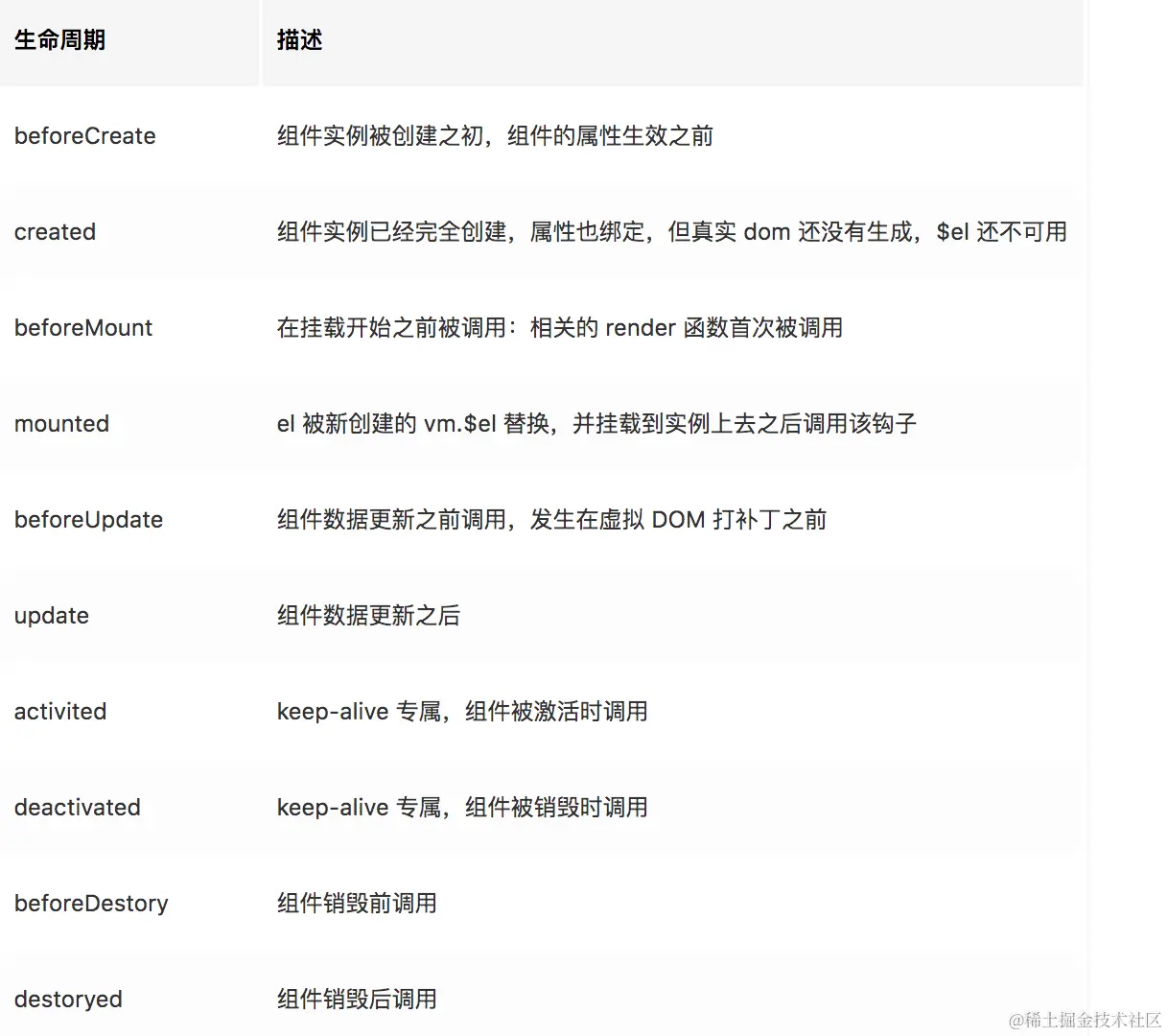 - beforeDestroy和destroyed钩子函数间的生命周期