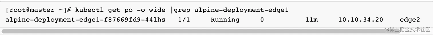 可以看到 edge2 已经注册到 node1 上的 cloudcore 并同步节点信息到 k8s,测试发布服务到 edge1 上: