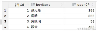 查询beauty表和boys表id相同的字段, 由于两个表都有id字段, 因此要给表取上别名, 利用别名.字段作为区分.