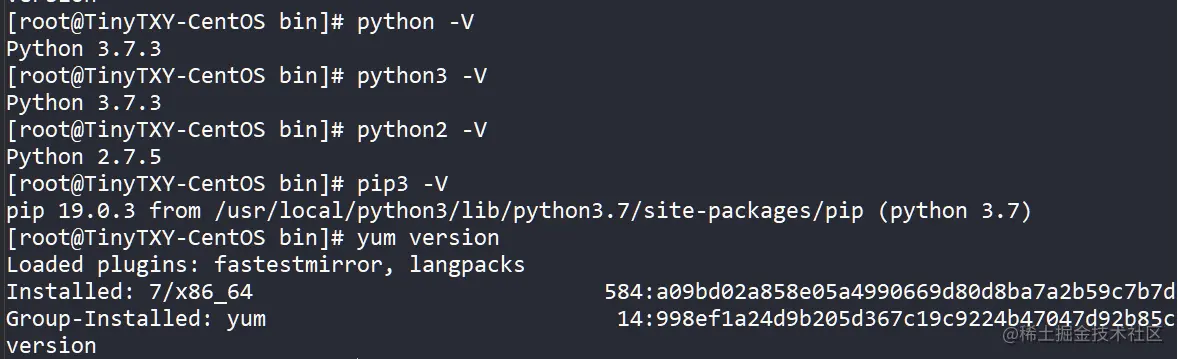 最后分别输入yum,python,python2,python3,pip等命令检查一下