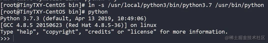 ln -s /usr/local/python3/bin/python3.7 /usr/bin/python