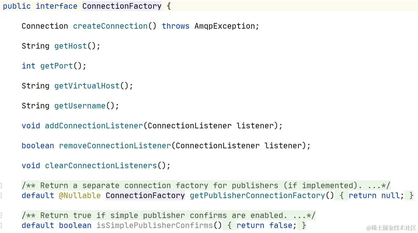 CachingConnectionFactory实现了ConnectionFactory接口,通过调用amqp-client的ConnectionFactory函数创建ConnectionFactory。