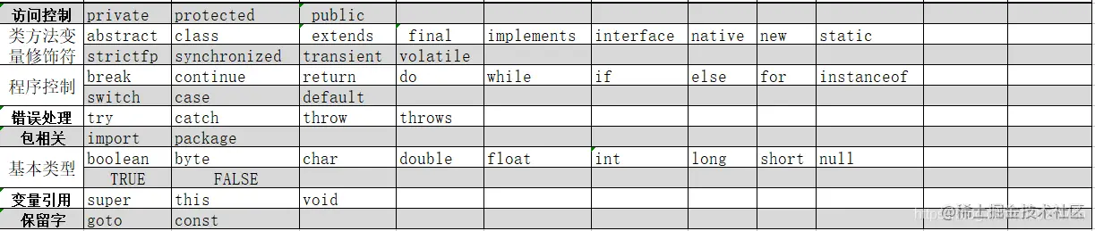 | goto | 保留关键字,没有具体含义 |