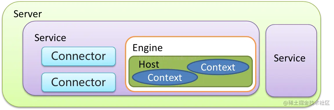 是一个基于JAVA的WEB容器,其实现了JAVA EE中的 Servlet 与 jsp 规范,与Nginx Apache 服务器不同在于一般用于动态请求处理。在架构设计上采用面向组件的方式设计。即整体功能是通过组件的方式拼装完成。另外每个组件都可以被替换以保证灵活性。