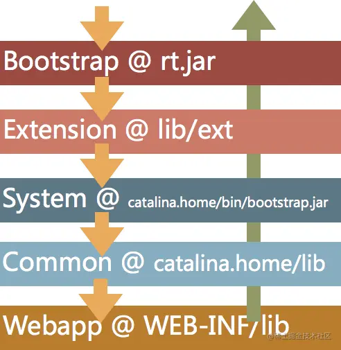 在Tomcat中,默认的行为是先尝试在Bootstrap和Extension中进行类型加载,如果加载不到则在Webapp ClassLoader中进行加载,如果还是找不到则在Common中进行查找。