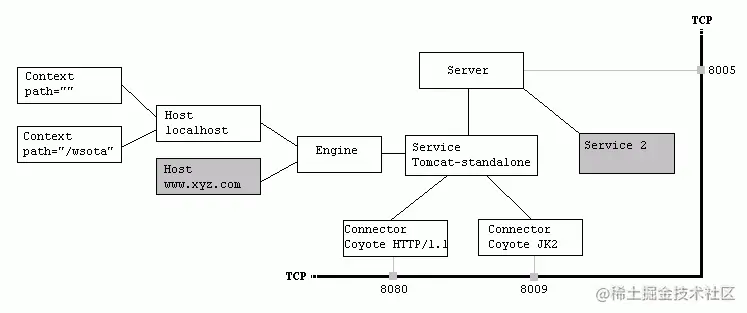 - Tomcat各组件及关系
