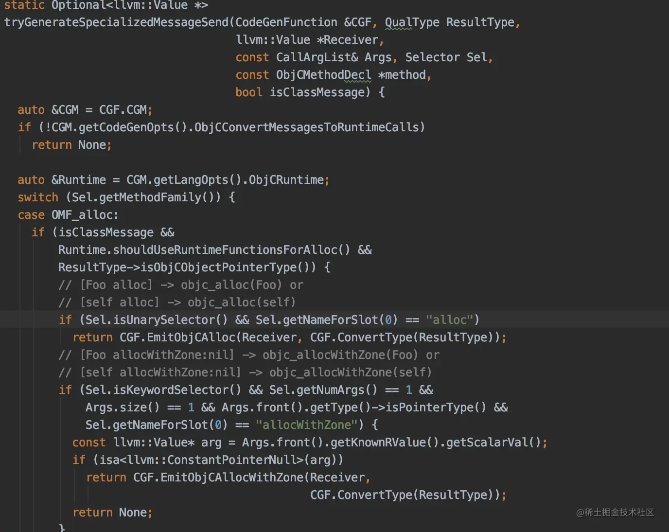 我们通过汇编在llvm编译器里里面找到相关代码