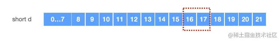 short d当存储到short d时,CPU读到了16的位置,16是short大小(2)的整数倍,可以直接存储