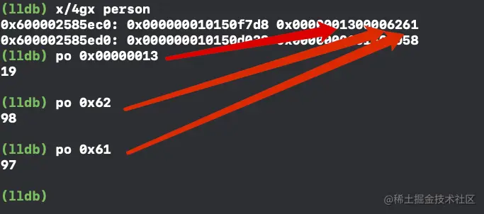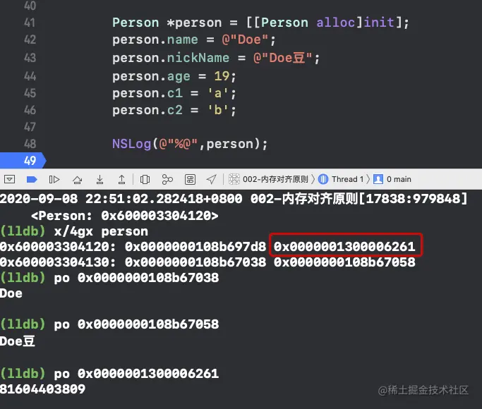 0x0000001300006261指针指向的是乱码数据,那么,person的int属性age,char属性c1、c2在哪?