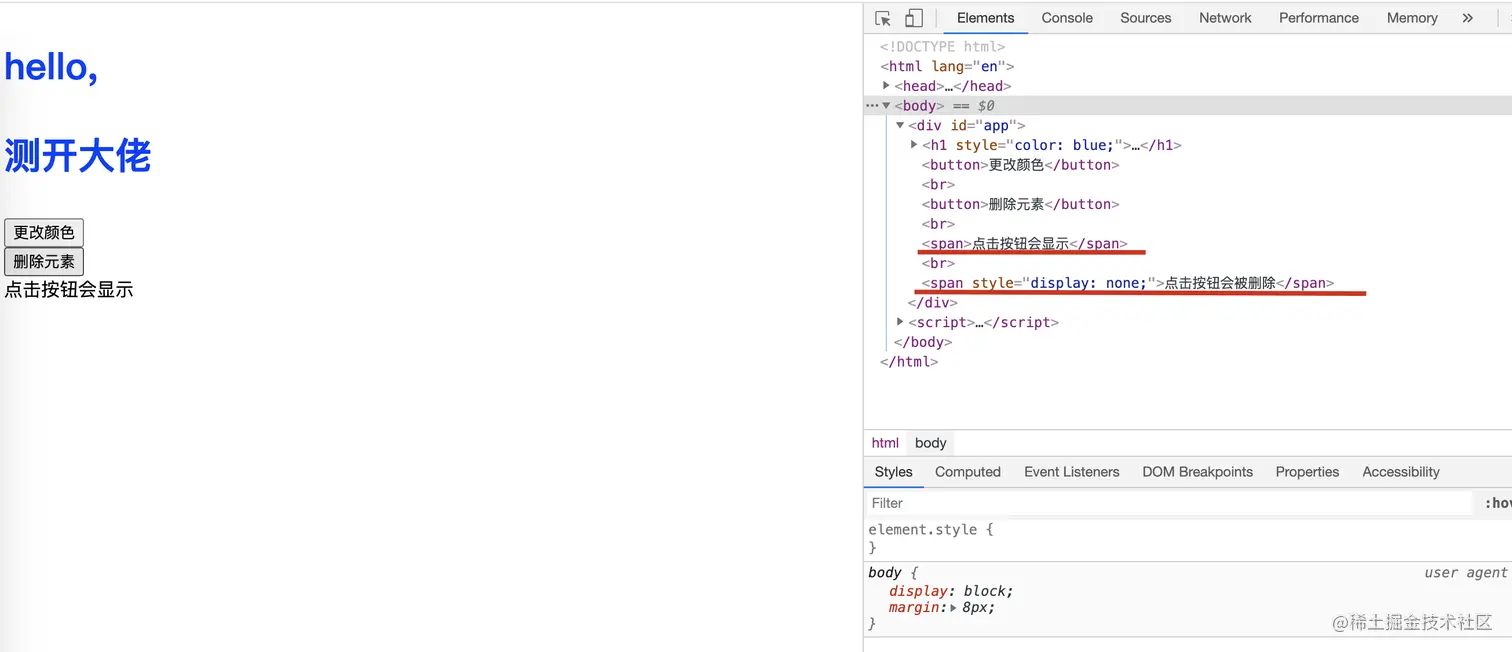 在实例挂载之后(生命周期的内容后面会详细讲的奥), 元素可以用 vm.$el 访问。