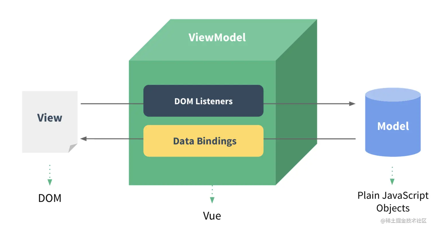 在MVVM架构下,View 和 Model 之间并没有直接的联系,而是通过ViewModel进行交互,Model 和 ViewModel 之间的交互是双向的, 因此View 数据的变化会同步到Model中,而Model 数据的变化也会立即反应到View 上。