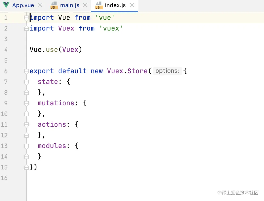 import Vuex from 'vuex' Vue.use(Vuex)-