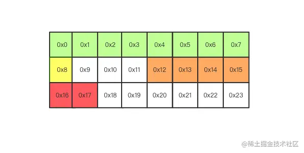 变量b:占4个字节,从8开始,此时min(8,4),8可以整除4,即 8-11 存储 b