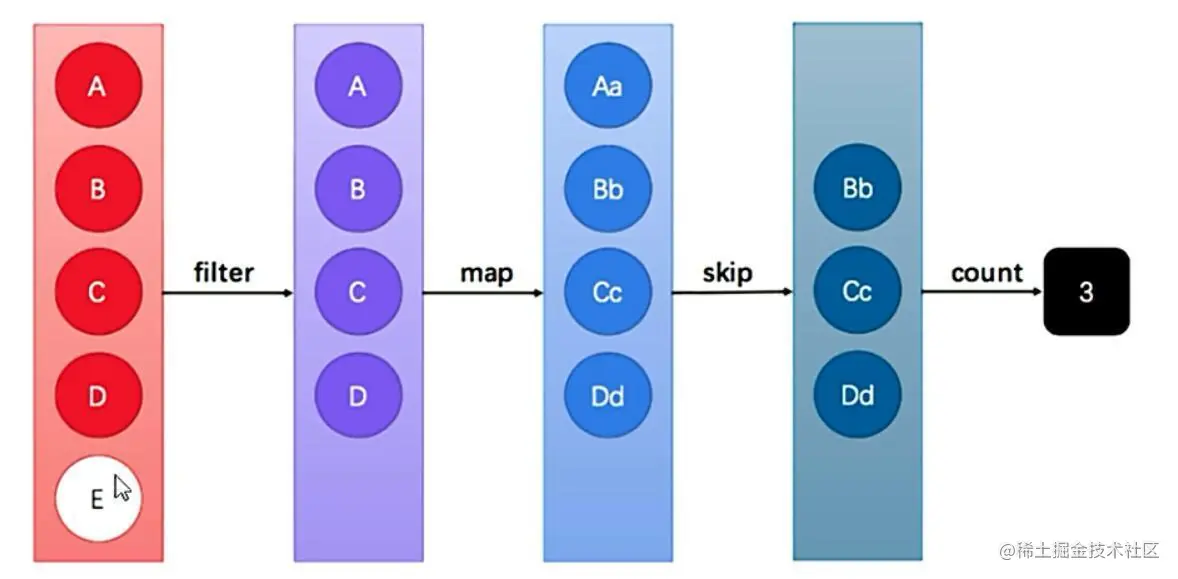 如果流的当前长度大于n,则跳过前n个;否则将会得到一个长度为0的空流。基本使用: