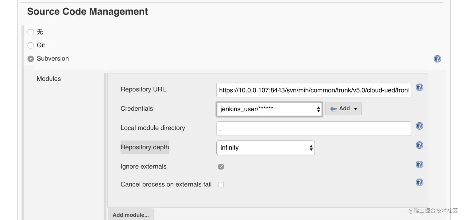- Source Code Management,首先是代码仓库的配置