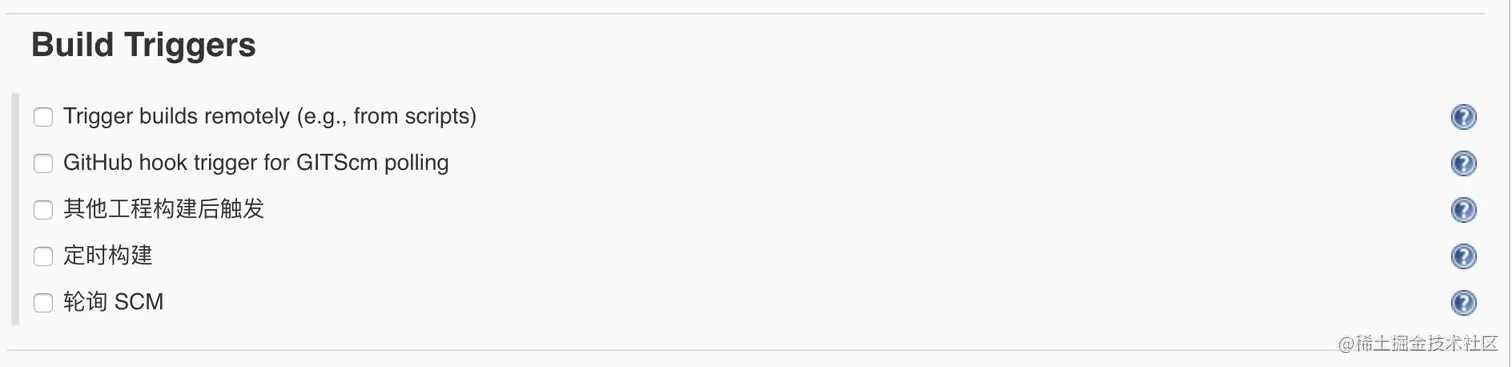 - SCM:选择git或者svn作为代码触发器