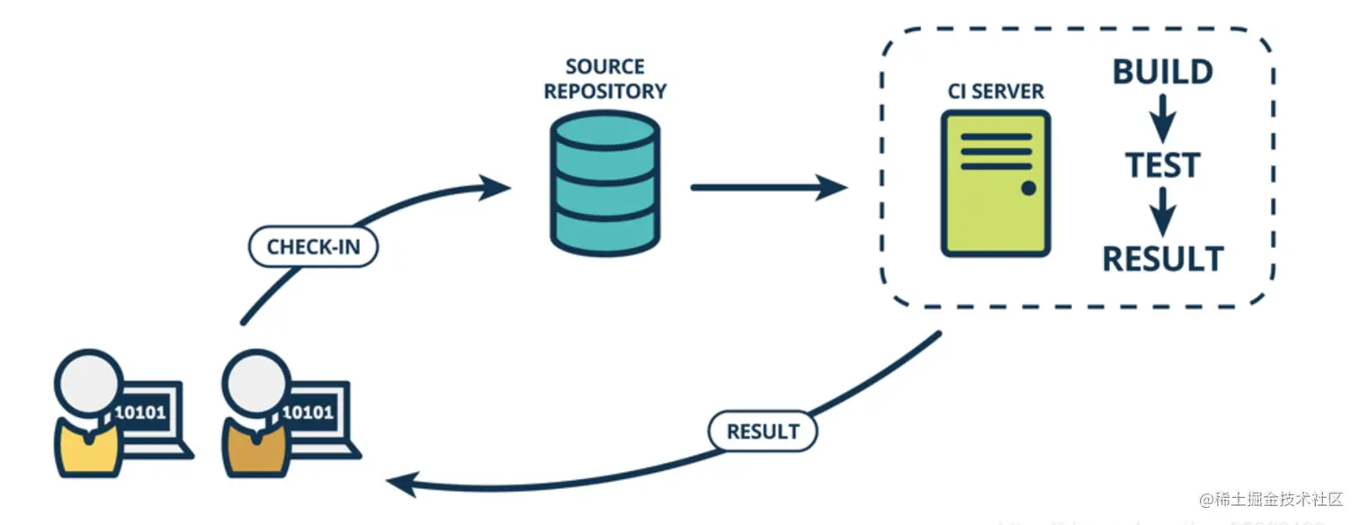 - 持续集成:当代码仓库代码发生变更,就会自动对代码进行测试和构建,反馈运行结果。